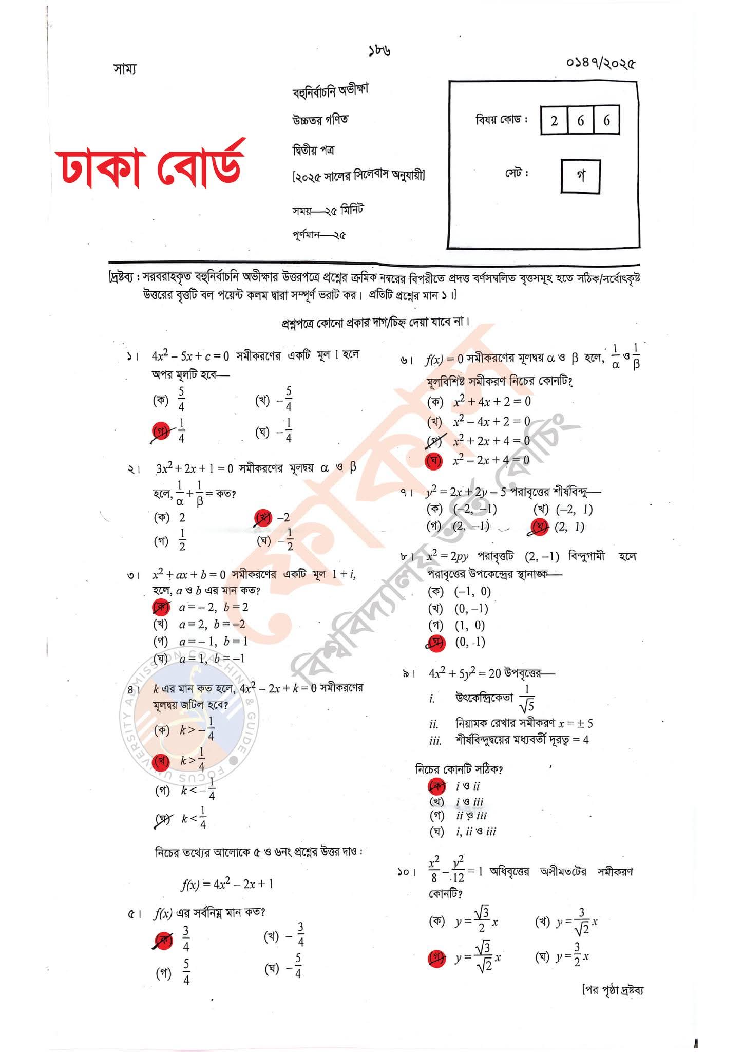 এইচএসসি ঢাকা বোর্ড উচ্চতর গণিত ২য় পত্র বহুনির্বাচনি/Mcq সমাধান ২০২৫ | এইচএসসি উচ্চতর গণিত ২য় পত্র mcq প্রশ্ন উত্তর ২০২৫ ঢাকা বোর্ড