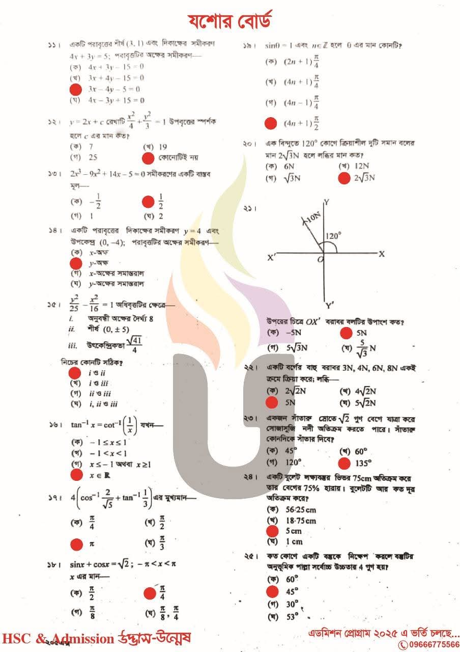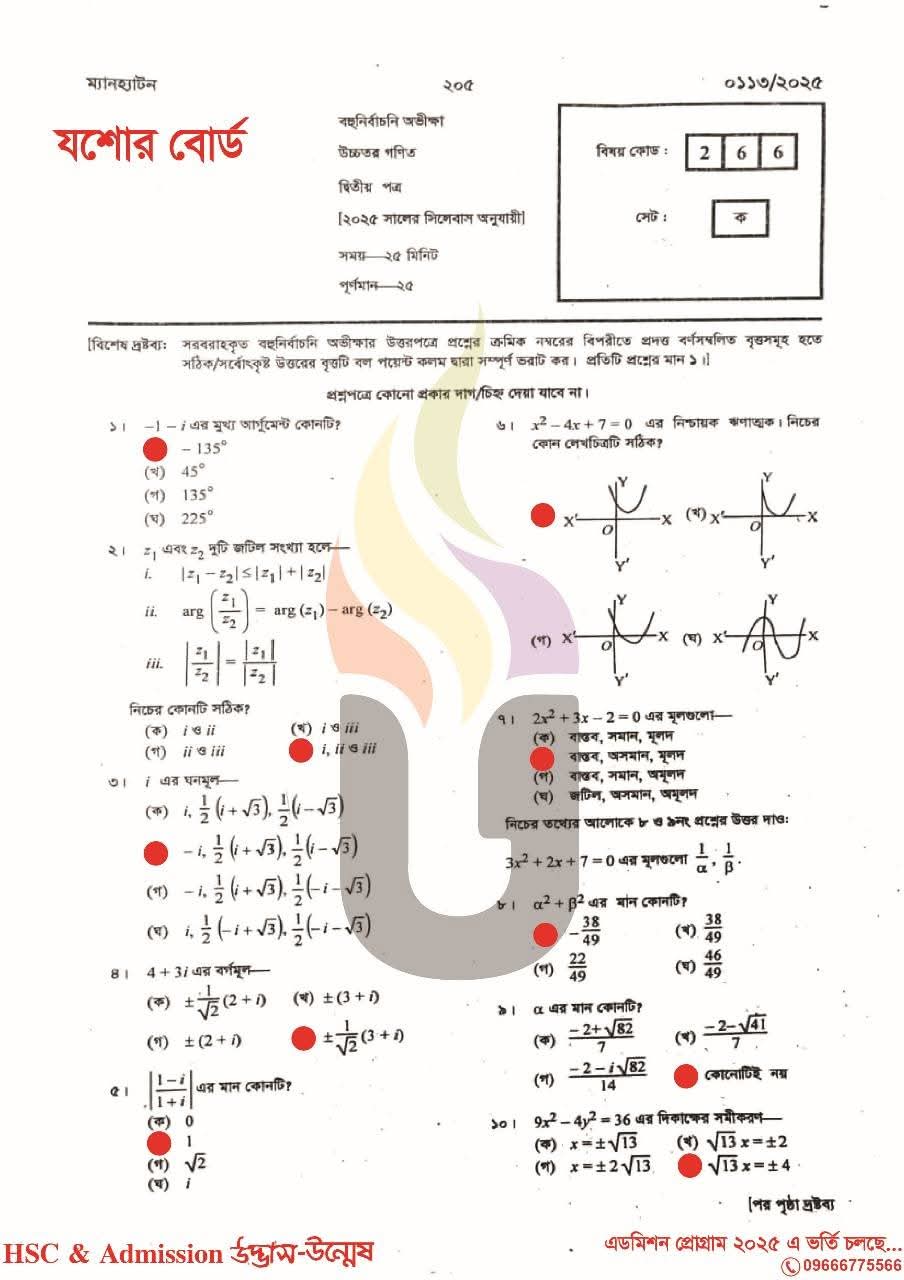 এইচএসসি যশোর বোর্ড উচ্চতর গণিত ২য় পত্র বহুনির্বাচনি/Mcq সমাধান ২০২৫ | এইচএসসি উচ্চতর গণিত ২য় পত্র mcq প্রশ্ন উত্তর ২০২৫ যশোর বোর্ড