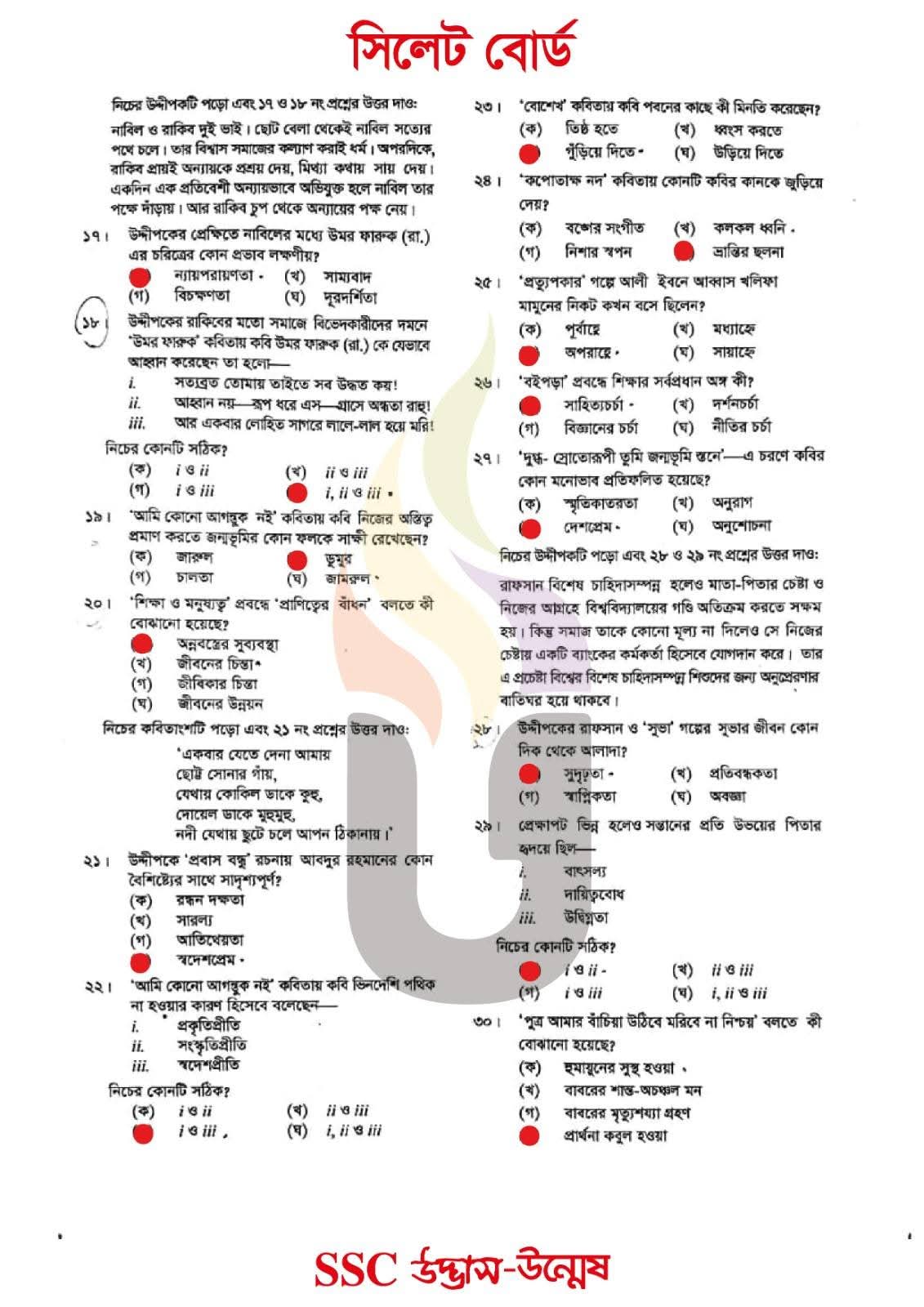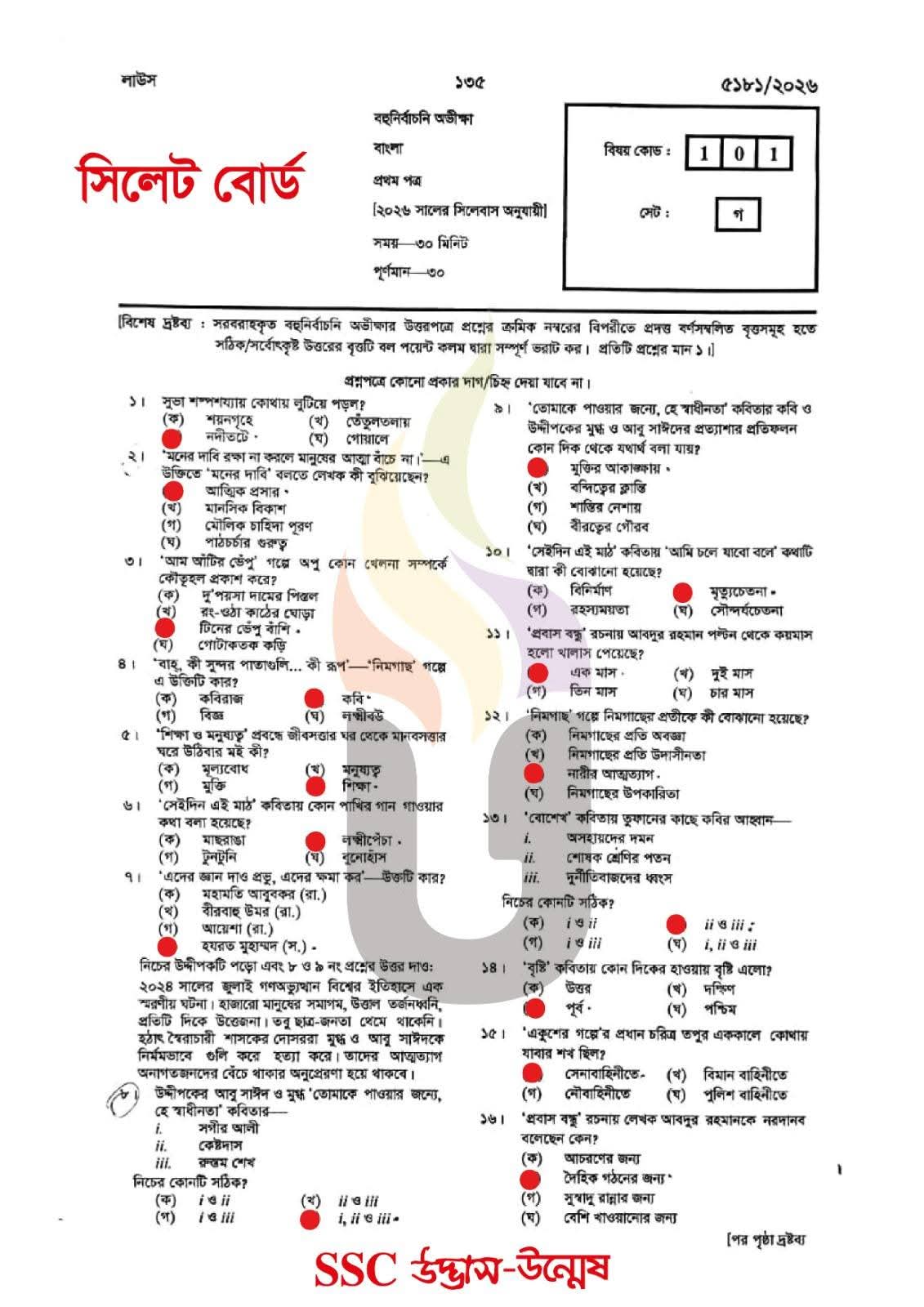 এসএসসি সিলেট বোর্ড বাংলা ১ম পত্র বহুনির্বাচনি/MCQ সমাধান ২০২৬
