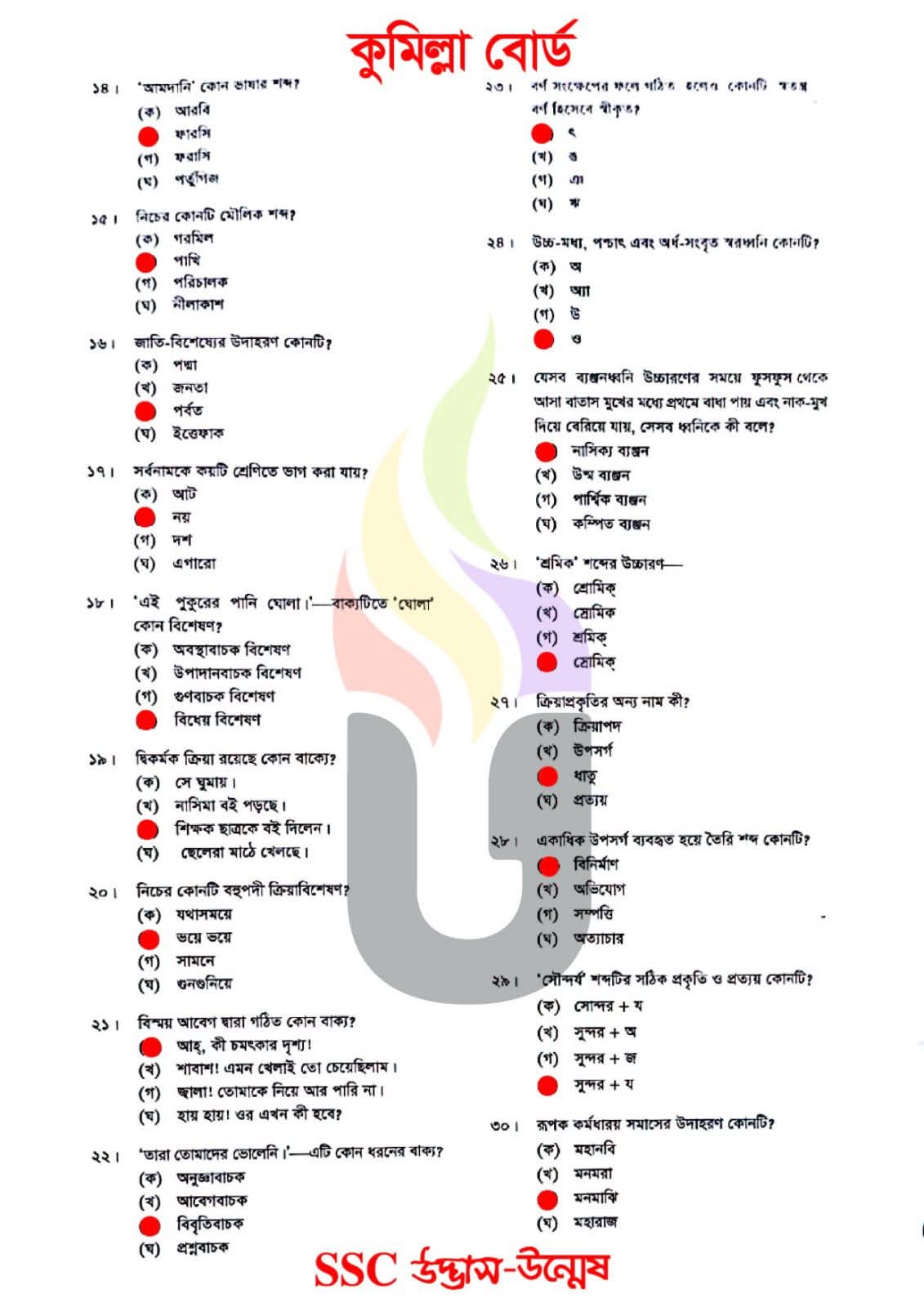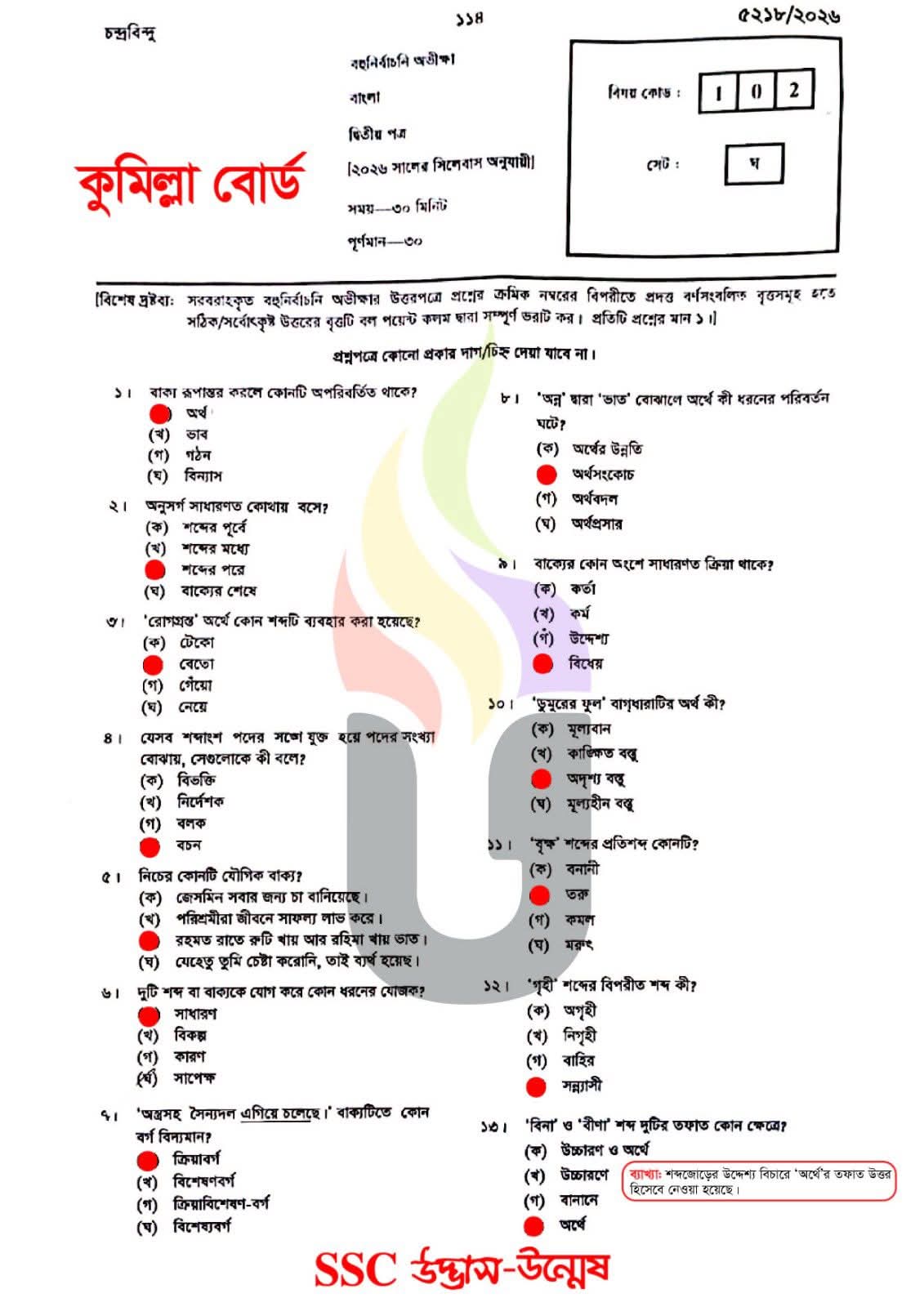 এসএসসি কুমিল্লা বোর্ড বাংলা ২য় পত্র বহুনির্বাচনি/MCQ সমাধান ২০২৬