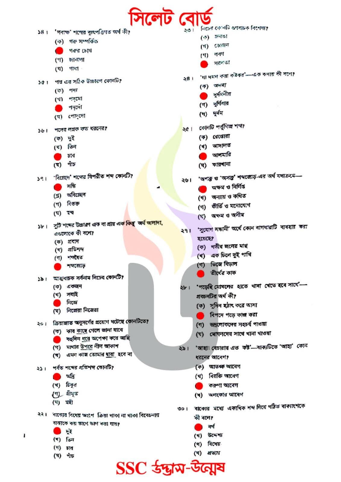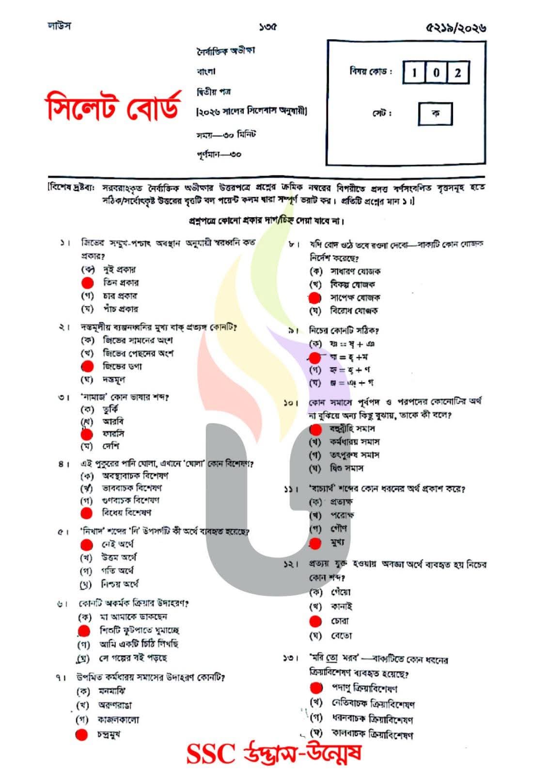 এসএসসি সিলেট বোর্ড বাংলা ২য় পত্র বহুনির্বাচনি/MCQ সমাধান ২০২৬