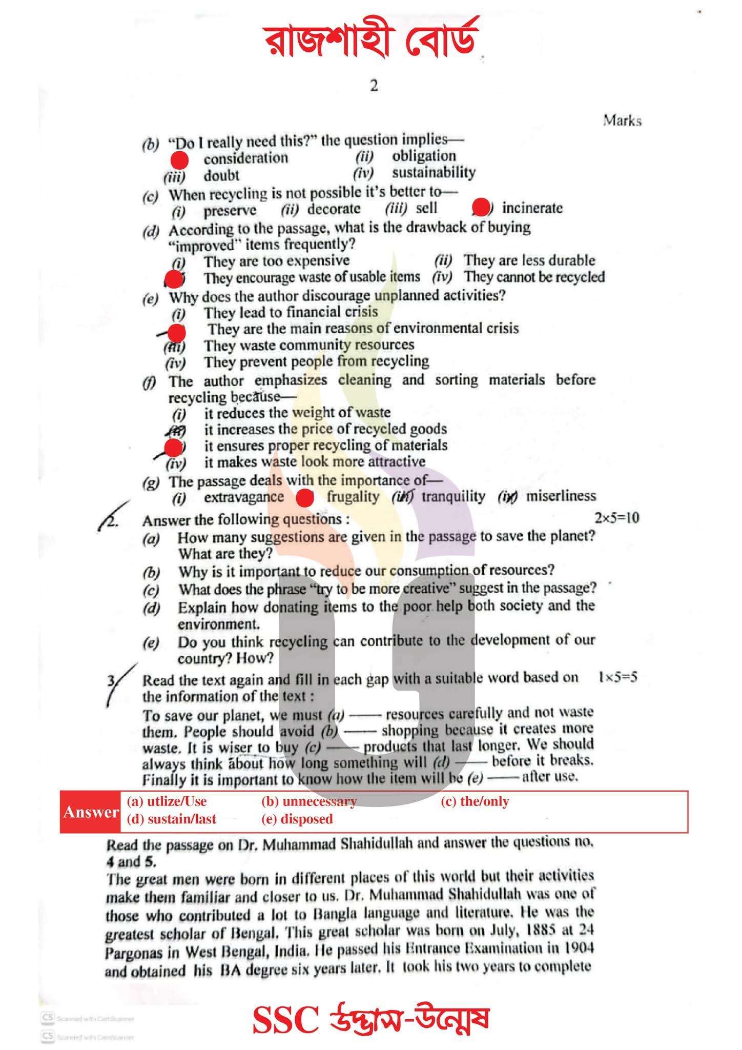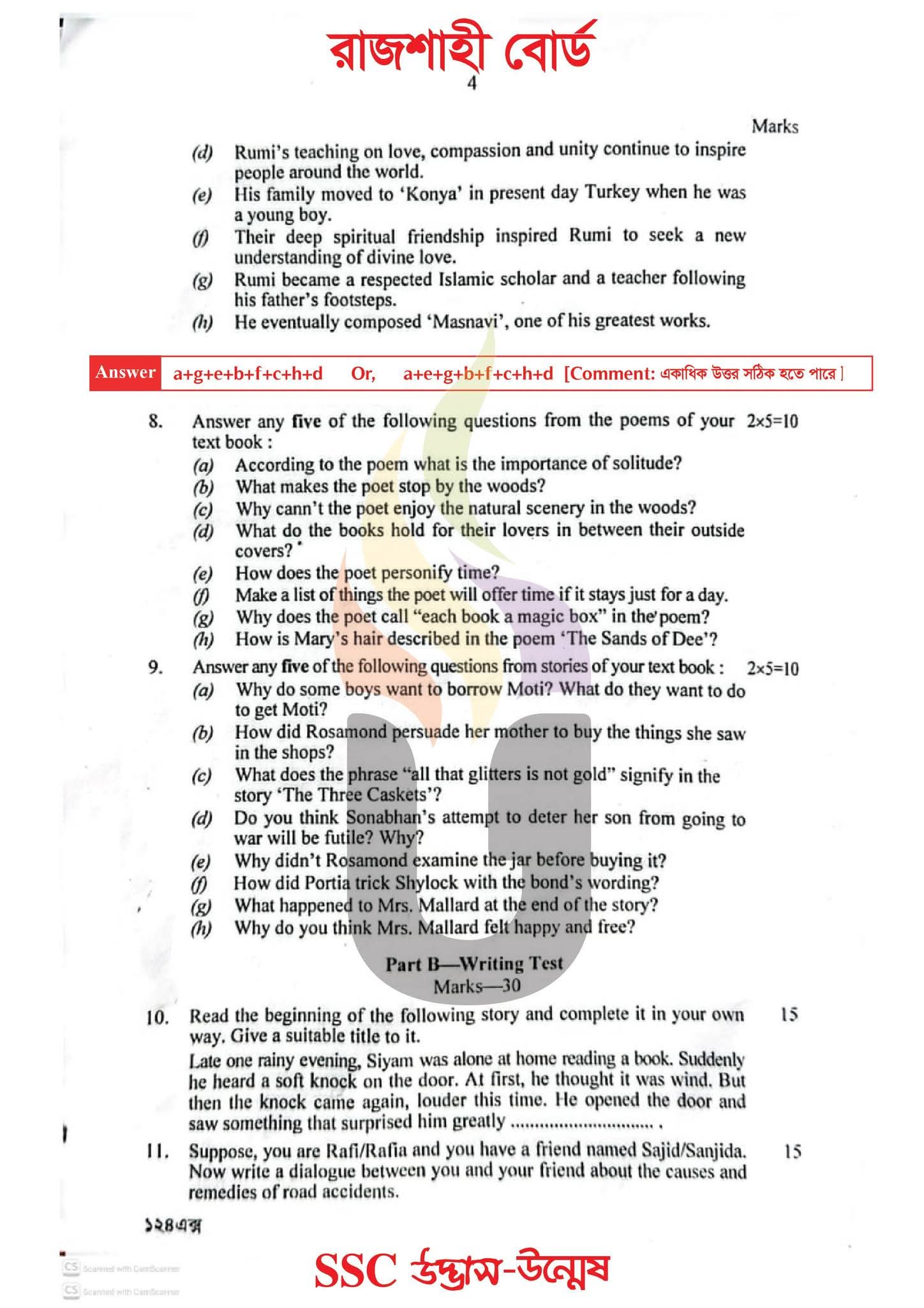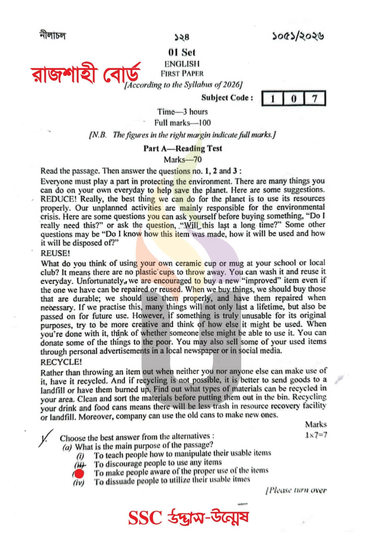 এসএসসি রাজশাহী বোর্ড ইংরেজি ১ম পত্র প্রশ্ন সমাধান ২০২৬