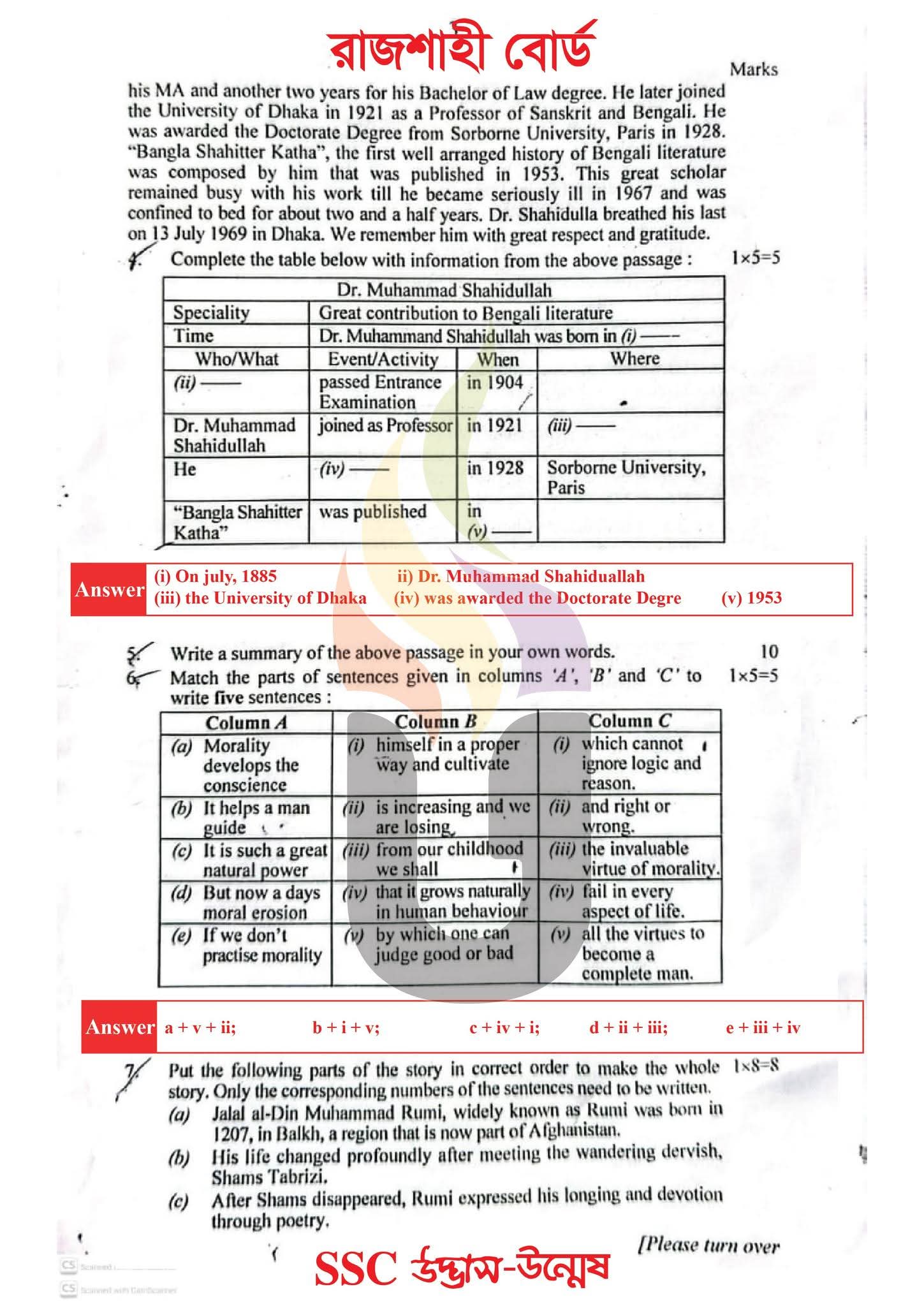 এসএসসি রাজশাহী বোর্ড ইংরেজি ১ম পত্র প্রশ্ন সমাধান ২০২৬ | Ssc Rajshahi Board English 1st Paper Question Solution 2026